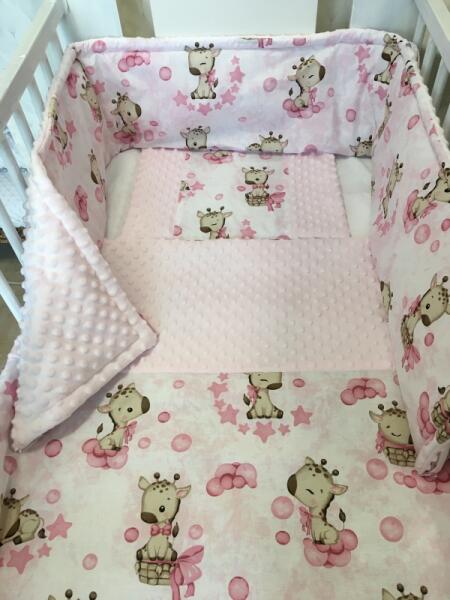 4 részes pamut/minky baba ágynemű szett - Rózsaszín zsiráf