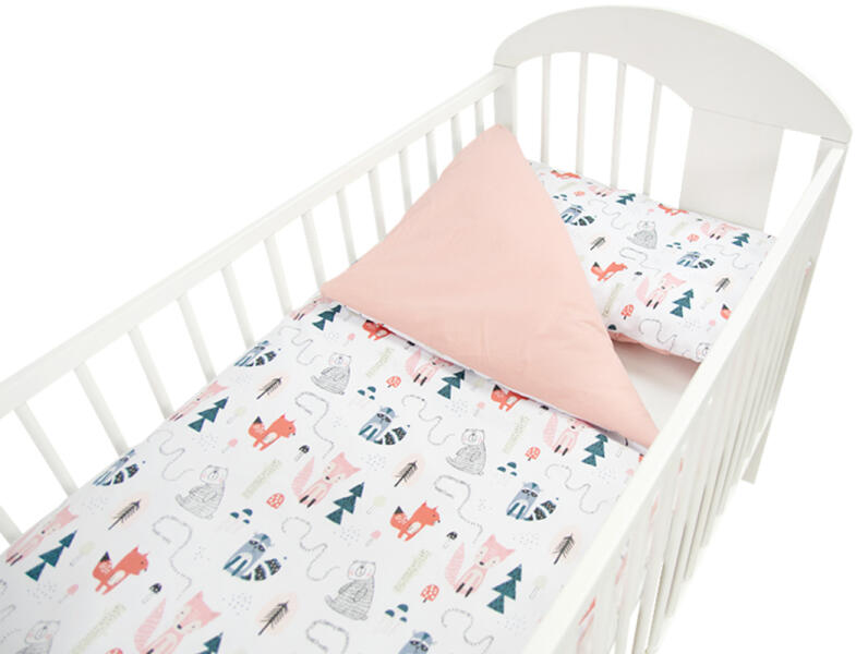 A puha pamut ágynemű pihentető alvást biztosít a kicsiknek. Az ágynemű egyik oldalát rókák és állatbarátaik gyönyörű motívuma díszíti, másik oldala kellemes rózsaszín színű. Az univerzális pasztell színeknek köszönhetően bármilyen típusú helyiségbe tökéletesen illeszkedik.