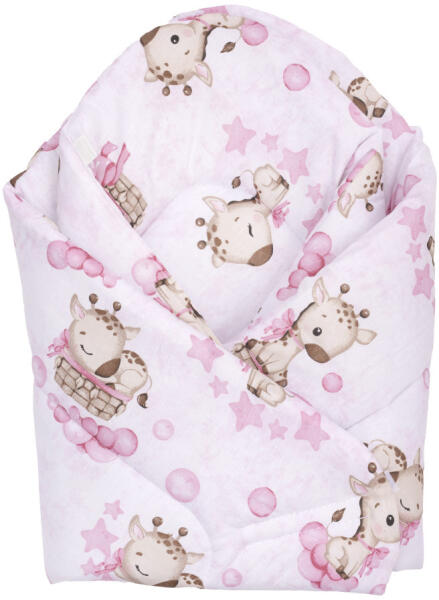 RAKTÁRRÓL AZONNAL! Pólyává átalakítható takaró - Rózsaszín zsiráfos Mérete: 78x78 cm
