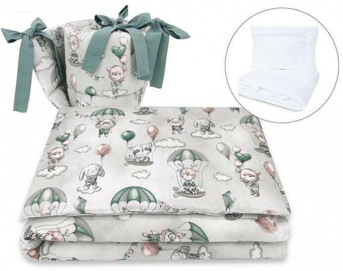 Baby Shop 5 részes babaágynemű - szürke/zöld lufis állatok