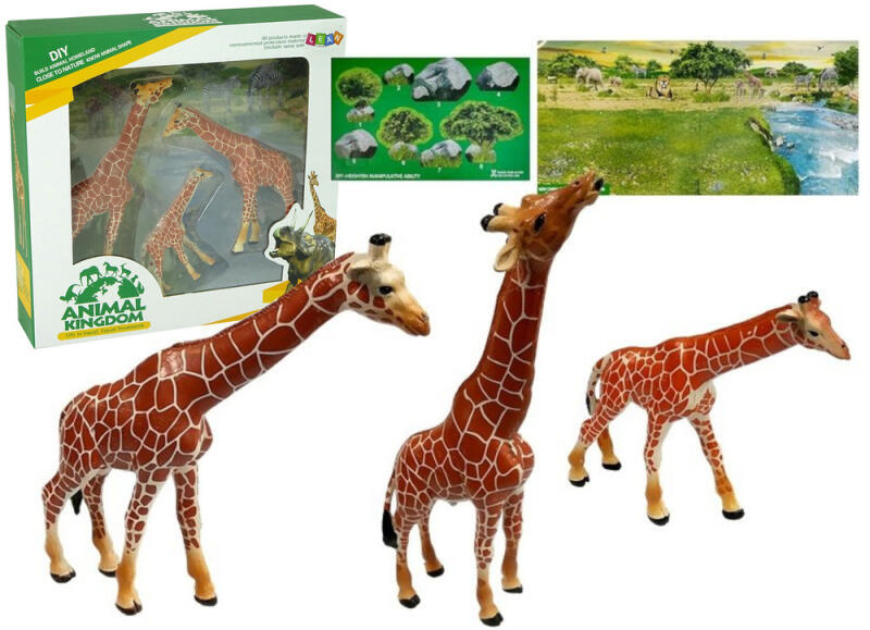 Zsiráf figurák Oktató Családi 3 darab + Afrika Háttér