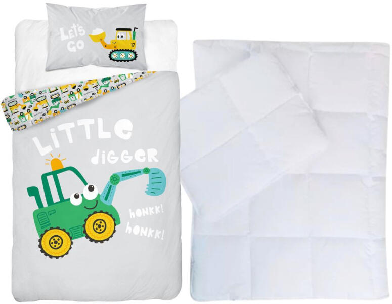 Markolós ovis ágynemű szett (little digger) Verhetetlen szettes ajánlat, melyben még kedvezőbb áron vásárolhatod meg ezt a gyönyörű ovis ágyneműhuzatunkat a hozzá illő Lalian ovis paplan-párna garnitúrával.