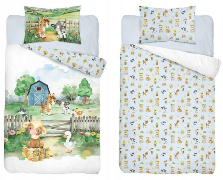 Pamut ágynemű huzat 100*135 cm - Farm kék