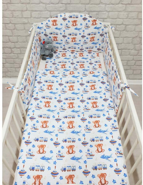 A Pihe-Tex ágynemű bõrbarát, légáteresztõ anyagának köszönhetõen egyenletes hõmérsékletet biztosít, hozzájárulva ezzel kisbabád nyugodt álmához. A párnában és a paplanban lévõ 2 cm vastag poliészter töltet antiallergén. A bõrbarát textilbõl készült Pihe-Tex fejvédõ körbe-körbe kipárnázza a babaágyat, megóvja a folyton izgõ-mozgó Kicsit az esetleges, rács okozta sérülésektõl. Kényelmes, kis bújós fészekké alakítja át a fekhelyét, hogy kisbabád alvás és játék közben is biztonságban érezhesse magát. Rögzítés: kis szalagokkal lehet az ágy rácsához kötözni. Mivel kizárólag kiváló minõségű pamutból készülnek babatextíliáink, ezért méret- és színtartóak. Mosógépben 40 fokon, kímélõ programon tisztítsd õket, és sokáig élvezhetitek szépségüket. Méretek:Párna: 40x50 cmPaplan: 90x140 cmFejvédõ: 190x25 cmAnyaga:Huzat: 100% pamutTöltet: 100% poliészterA képeken látható plüss illusztráció, nem szállítjuk a termékkel együtt. A termék külseje kissé eltérhet a képen szereplõtõl.