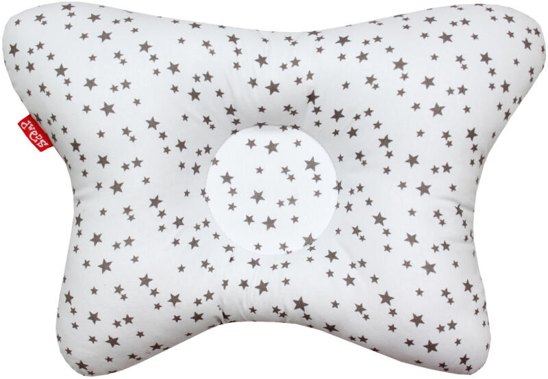Scamp laposfejűség elleni párna, fehér-szürke, csillagos.