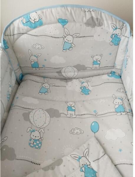 SZEKO Stúdió 3 részes baba és gyermek ágynemű garnitúra nyuszkópajti kék