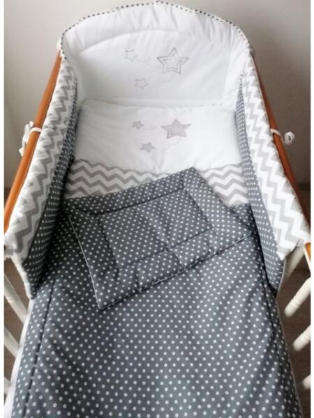SZEKO Stúdió 3 részes baba és gyermek ágynemű garnitúra - szürke csillagfüzér
