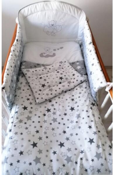 SZEKO Stúdió 3 részes baba és gyermek ágynemű garnitúra - szürke csillagfüzéres maci