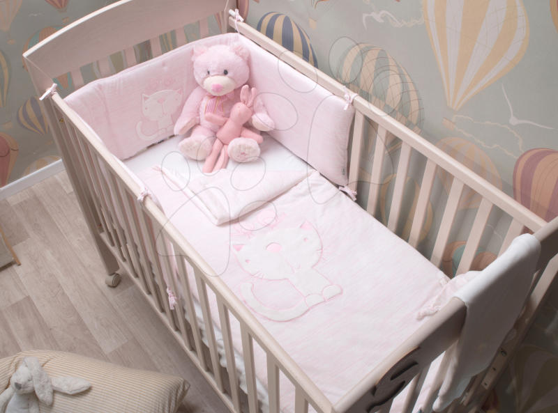 Classic rózsaszín garnitúra babaágyba  tökél etes minden kis újszülött hercegnő részére. L egmodernabb dizájnban lett megalkotva, kellemesen puha és sima a bababőrnek.   A szettbe tartozik egy sima takaró, strech lepedő és fejvédő babaágyba. Mindhárom eleme a szettnek légáteresztő 100% pamut jersey -ből készültek aranyos cicus motívummal díszítve. Kisbaba szett tökéletes kombinációja klasszikus és vidám stílusnak, ezért nagyszerűen kiegészíti a gyerekszoba dizájnját. Méretei gyermek takarónak 100*120 cm, méretei a fejvédőnek 32*176 cm és méretei a strech lepedőnek 140*70 + 20 cm (a matrac vastagságától  függ). Babaágy takaró csöppségét pihenés közben kényelmes melegben tartja. Légáteresztő, legkisebbek szükségleteire odafigyelve lett megalkotva. Tökéletesen hozzáillő kiegészítő a takaróhoz a fejvédő a babaágyra , melyet egyszerűen a szalagokkal a kiságy rácsozatához lehet kötni. A fejvédő körbe-körbe kipárnázza a kiságyat, megóvja a mindig izgő mozgó kicsit az esetleges, rács okozta sérülések ellen. Kényelmes kis bújós fészekké alakítja át a fekhelyet. Harmadik kellemes kiegészítő a szettből a strech lepedő klasszikus stílusban. A gumírozás a helyén tartja a lepedőt, ezért gyermeke nyugodtan alhat és nem fog arra ébredni, hogy köré csavarodott a lepedője.   Csecsemő kiságy garnitúra rózsaszín színben pompázik cicus motívummal tarkítva a takarón és a fejvédőn, megfelelő minden kislány részére születés pillanatától fogva. SmarTrike egy elismert gyerek tricikli és roller gyártó vállalat, melynek termékei az egész világon nagyon közkedveltek és konkurencia mentesek. A legújabb sorozat termékei a smarTrike vállalatnak a toTs babaápoló kellékek a legkisebbek részére. Ez egy újító kategória, mely praktikus és stílusos segítséget nyújt szülőknek a picik mindennapos szükségleteinek kielégítésében. ToTs modern és elegáns kollekciót ajánl magasan minőségi termékekkel, mely tökéletesen tükrözi szülő és csemetéje izlését.   Kiváló minőséget észszerű áron  kínálja, miközben a stílus továbbra is magasan megmarad. Jellemzői