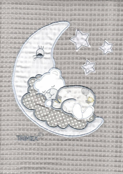 Trimex Waffle pamut babapléd - szürke holdon alvó maci
